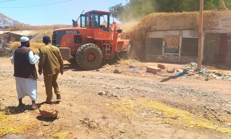 نفذت محلية الخرطوم حملة إزالة بالسوق الشعبي الخرطوم لعدد يفوق (160) موقعا تجاريا عشوائيا مدمرا ومحترقا في إطار خطة المحلية لإعادة تنظيم الأسواق وإزالة المخالفات والتشوهات البصرية وفتح الطرق وفقا لتوجيهات اللجنة العليا لتهيئة البيئة المناسبة لعودة المواطنين للخرطوم.